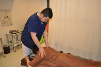 西洋医学理論(筋肉・神経)及び東洋医学理論(ツボ・経路)に基づき治療します。