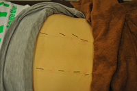 硬結(こり)や損傷している部分の周りを手で揉みほぐしたり、ストレッチをしたりします。